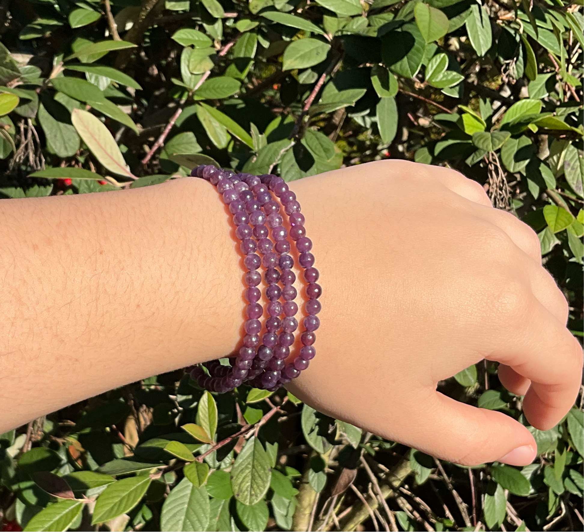 Experience a sense of calm and serenity with this Lepidolite Bracelet. Featuring delicate 4mm beads, this 7.5 inch stretch bracelet is lightweight, comfortable and infused with the soothing energy of Lepidolite, a stone of peace and emotional balance.