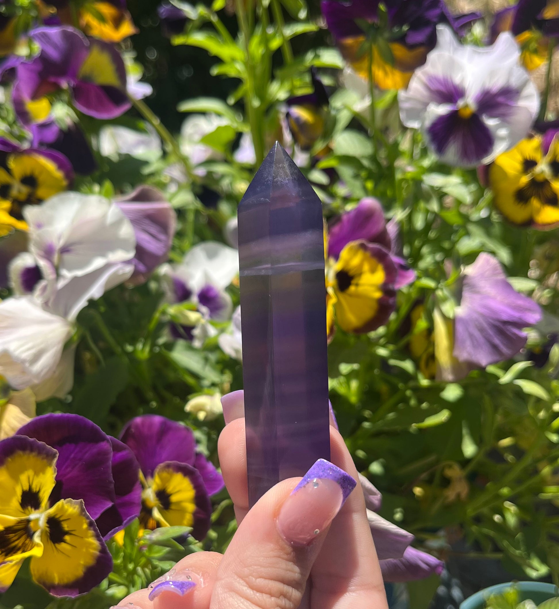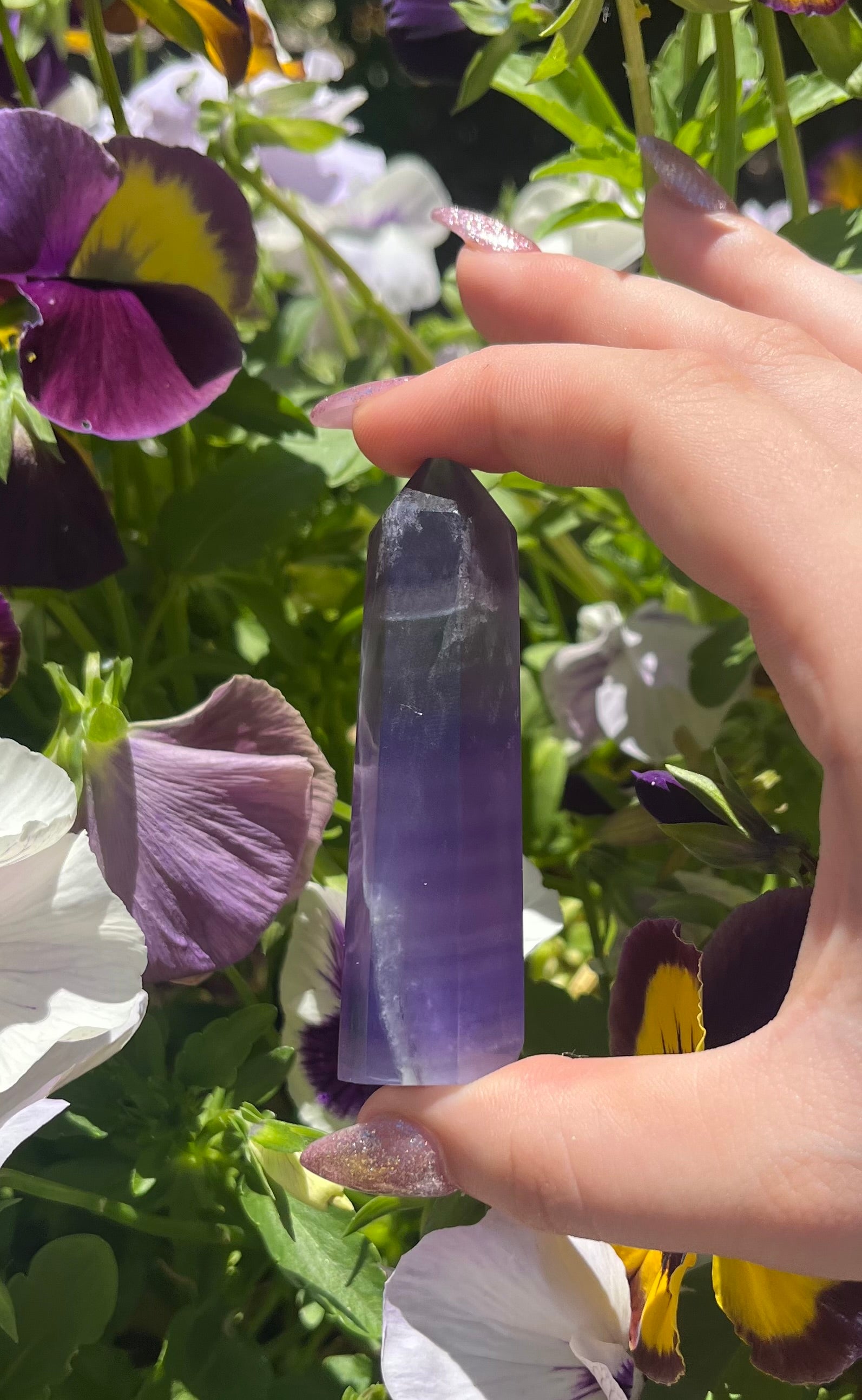 These striking Purple Fluorite Towers showcase rich, dreamy hues ranging from soft lavender to deep violet. Each tower is polished to a smooth finish, allowing the natural bands and subtle variations in color to shine through beautifully. Their elegant, pointed shape makes them ideal for directing energy and enhancing the atmosphere of your space.