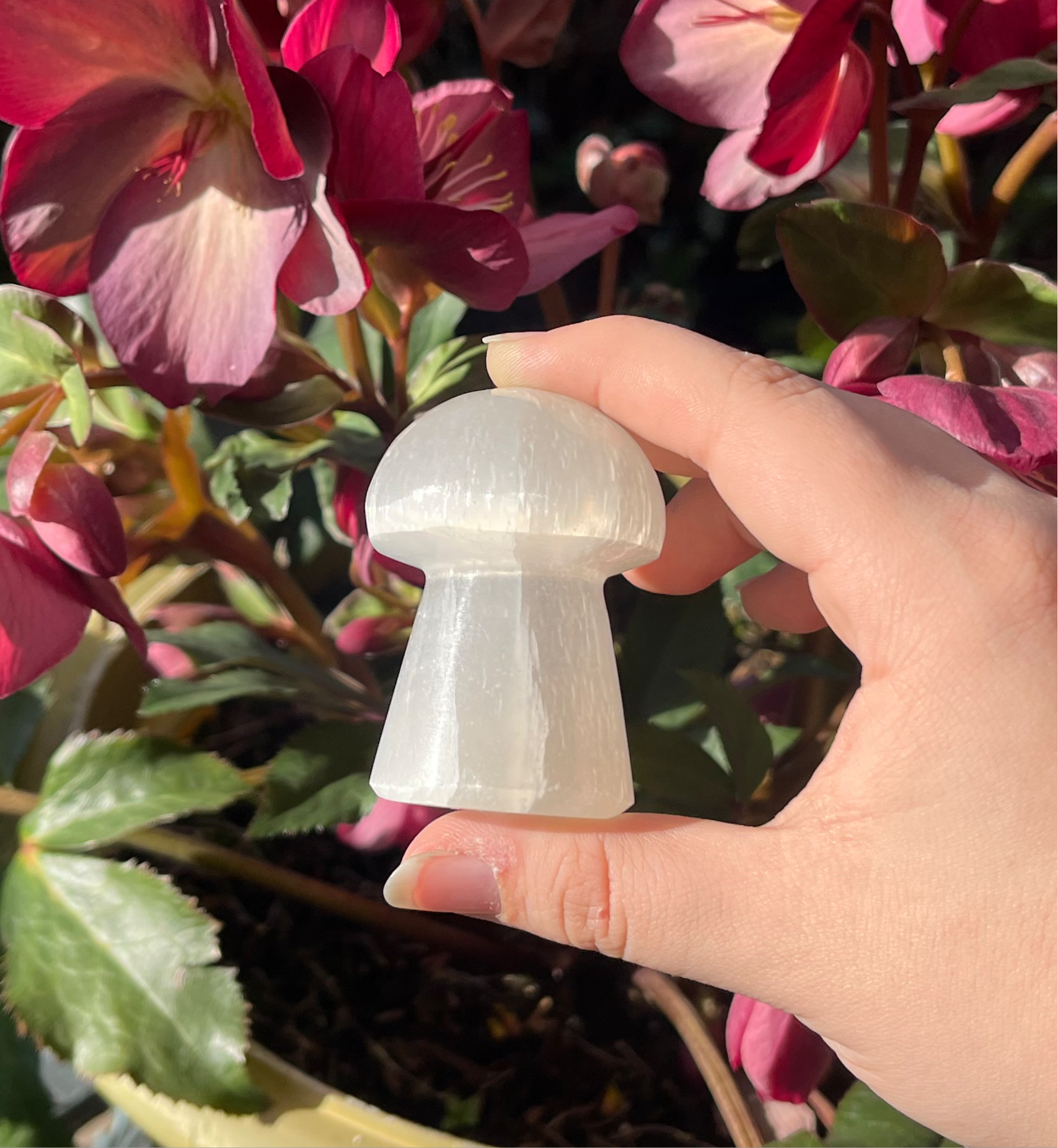 These Selenite (Satin Spar) Mushroom Crystals combine the energy-clearing power of Selenite with the symbolic wisdom of mushrooms, making them a perfect addition to any spiritual practice or crystal collection.